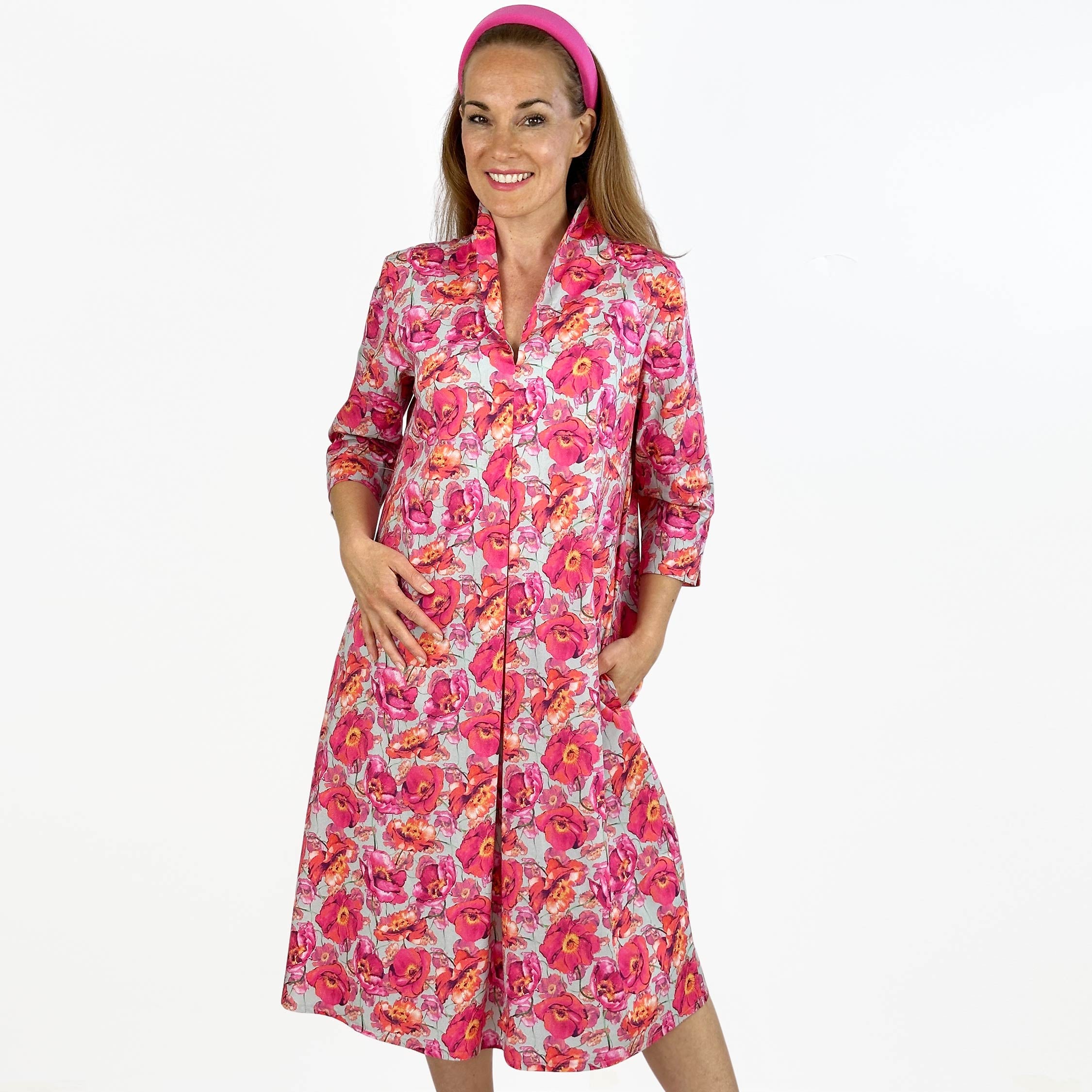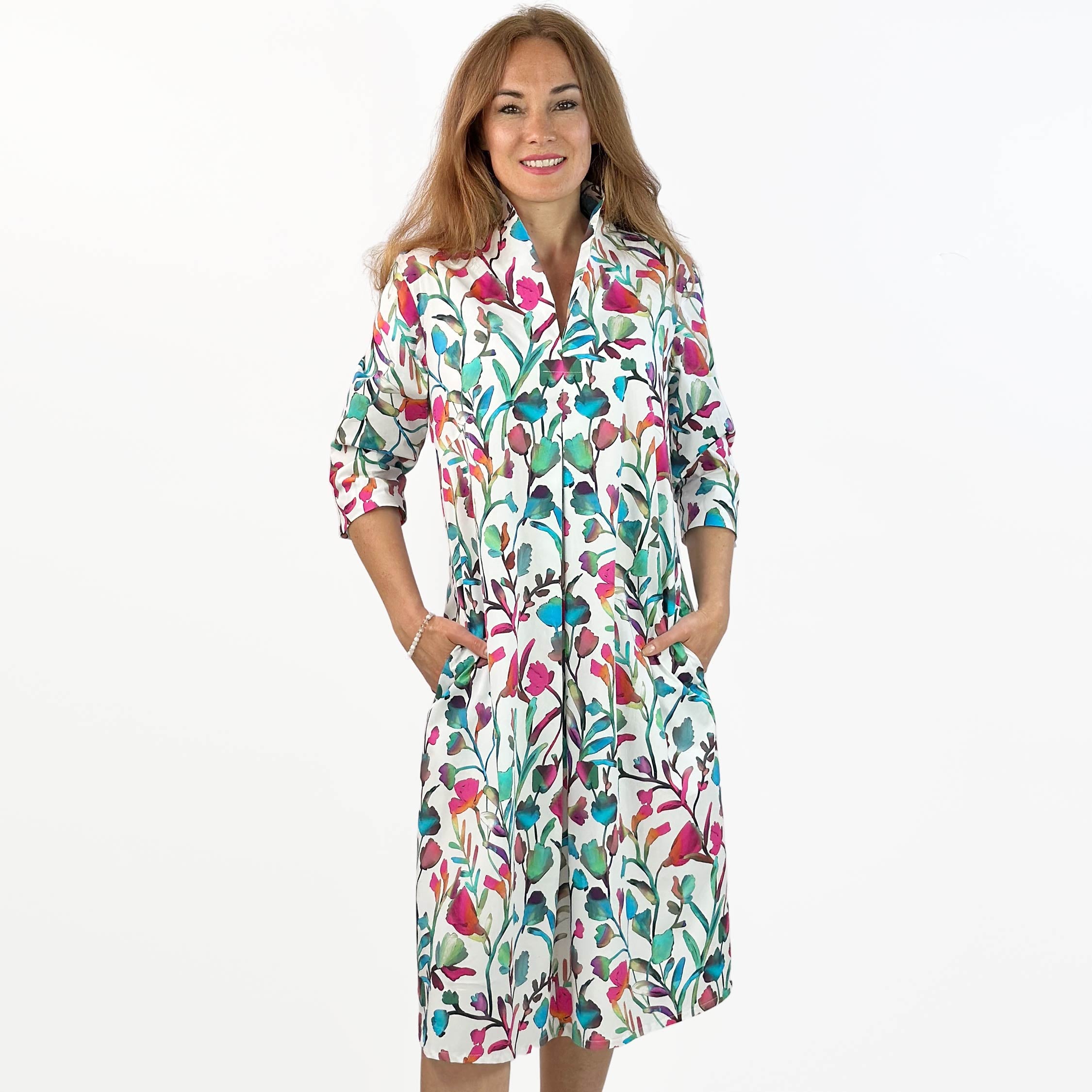 Produktbeschreibung: Das leger geschnittene knie-umspielend Tulpenkleid ist ein bequemes Kleid, das die Rundungen kaschiert.